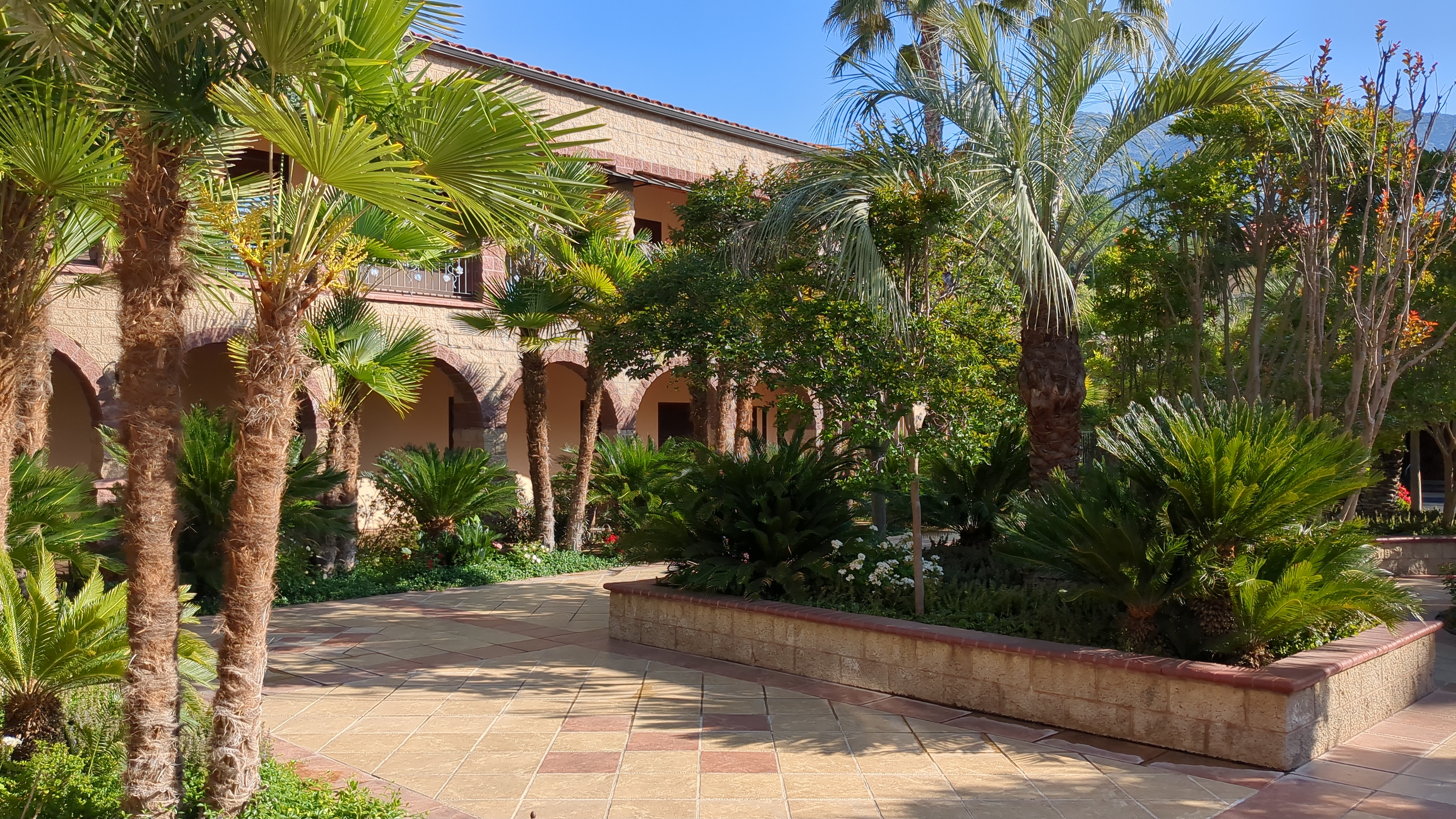 This is a path outside of the courtyard that leads to a beautiful