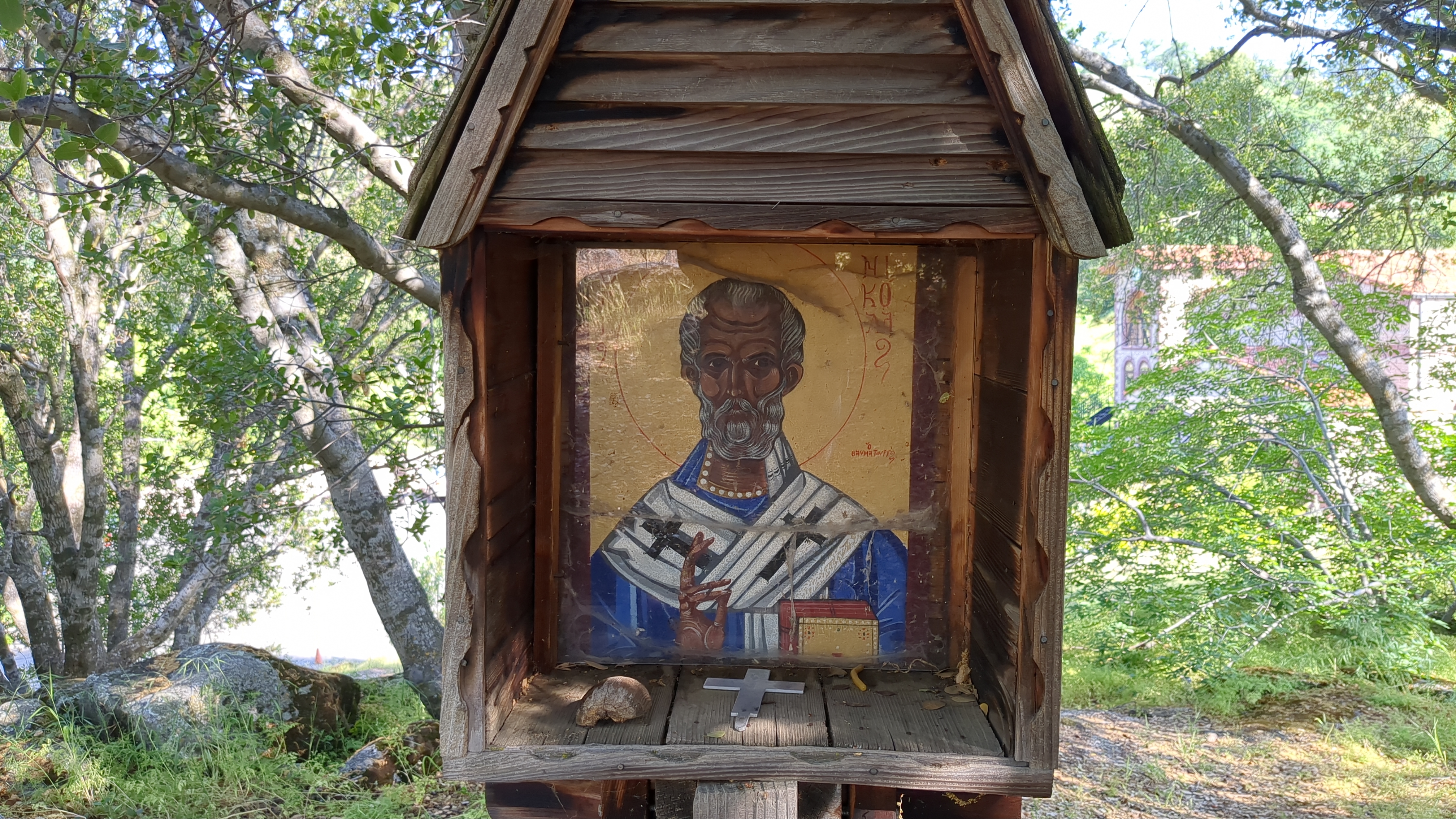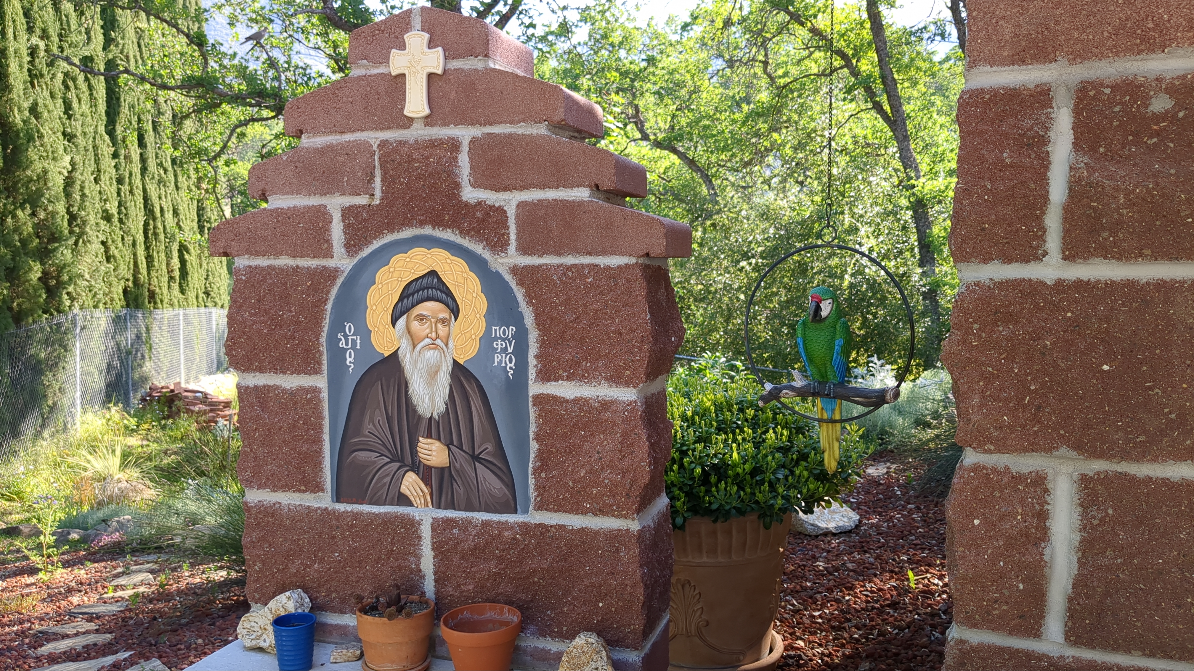 This is St. Porphyrios’s chapel. They even gave him a parrot :)